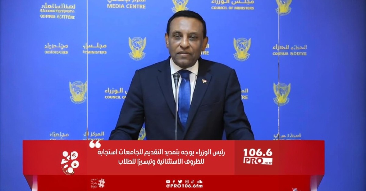 وجّه رئيس مجلس الوزراء الانتقالي، البروفيسور كامل إدريس، وزارتي التعليم العالي والبحث العلمي والمالية، بتمديد فترة التقديم للقبول في الجامعات الحكومية والخاصة لفترة إضافية مناسبة، وذلك حرصًا على إتاحة الفرصة أمام جميع الطلاب السودانيين للتقديم في البرامج الأكاديمية التي تتوافق مع طموحاتهم وتطلعاتهم المستقبلية.